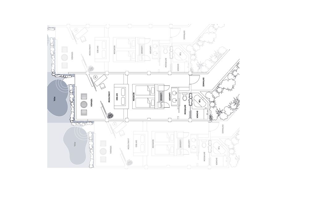 1 Bedroom / 1 Living room / 1 Bathroom with Shower & Toilet / Veranda / Private plunge pool